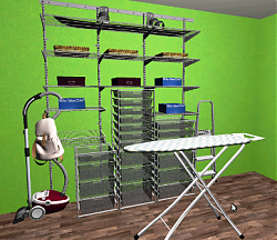Сетчатые полки выдерживают до 70 кг нагрузки, что позволяет организовать хранение не только одежды, но и хранение спортивного и садового инвентаря, гаражное хранение.